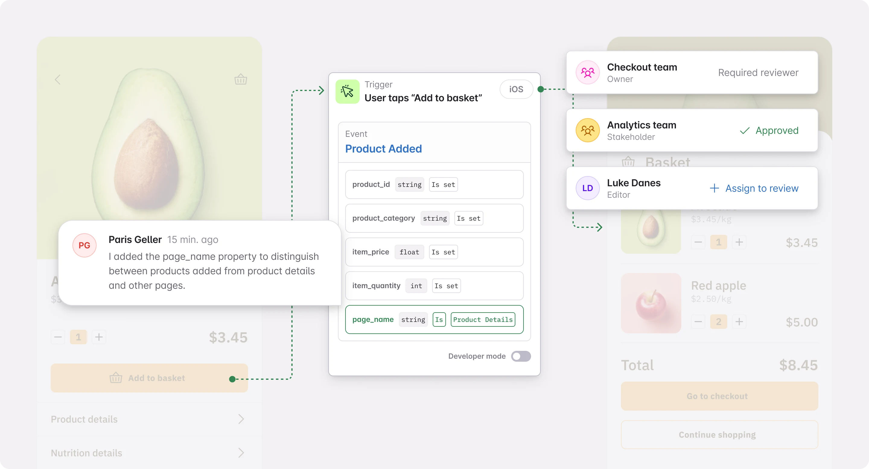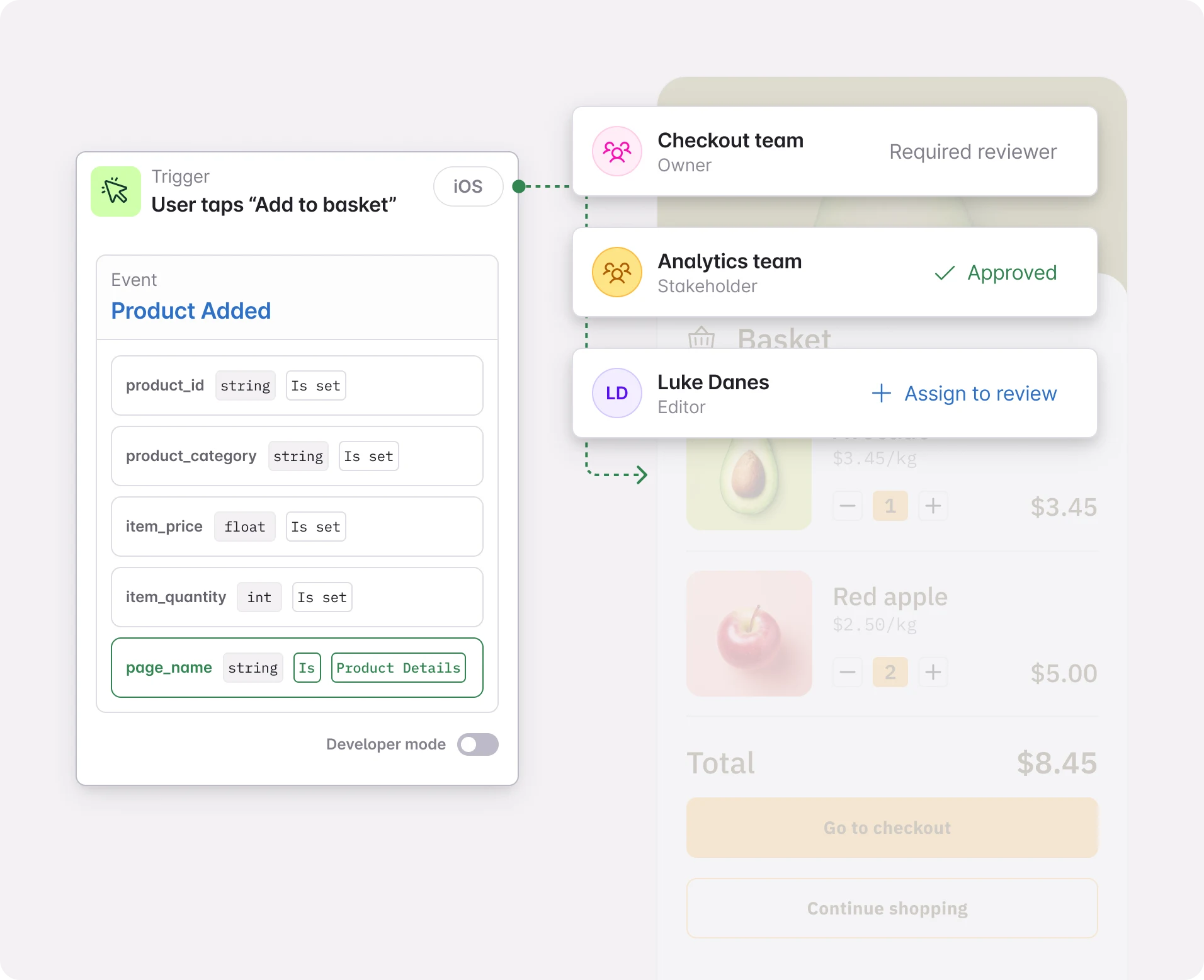 Automatically pull in the right stakeholders to review tracking changes, keeping governance tight without slowing product teams down.