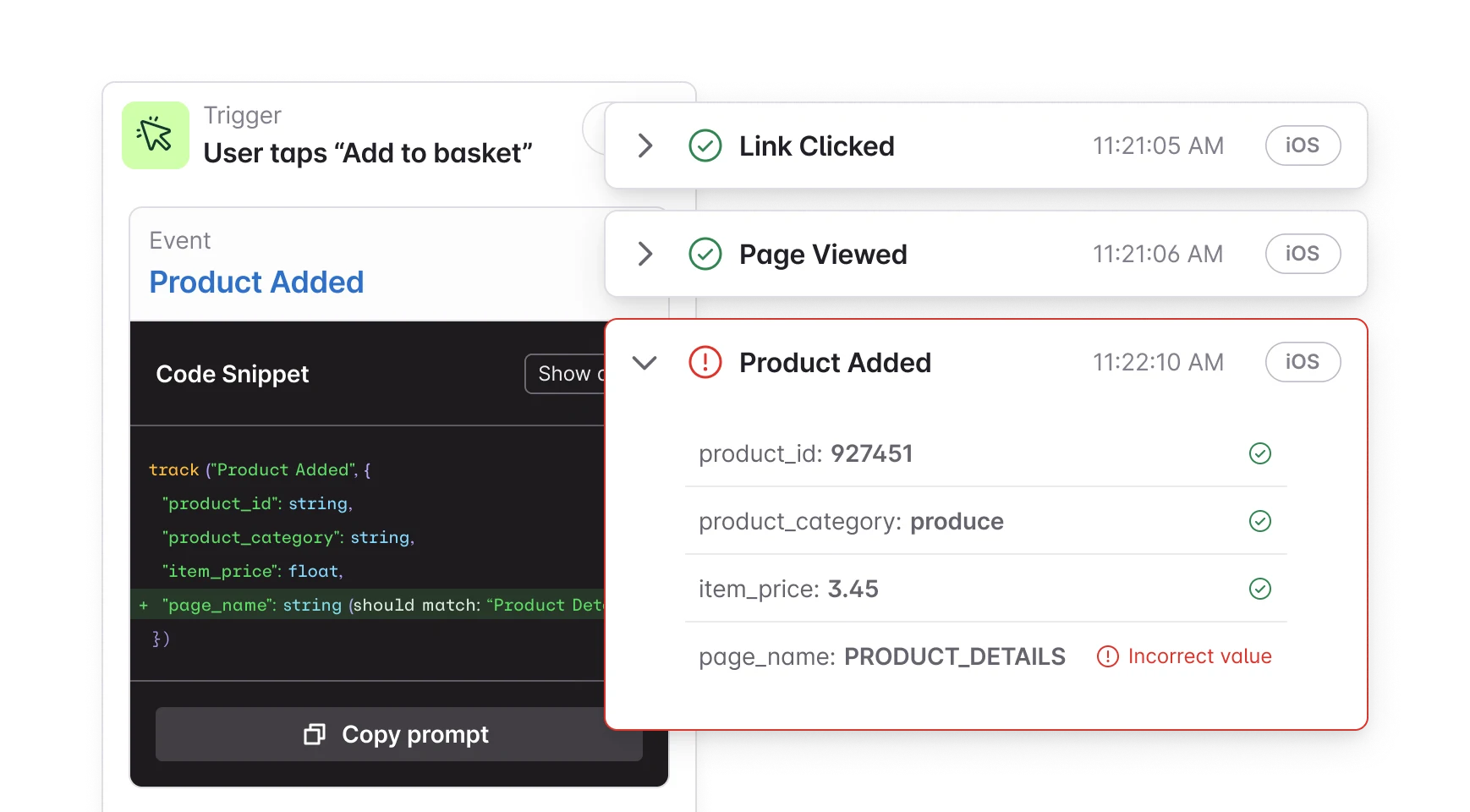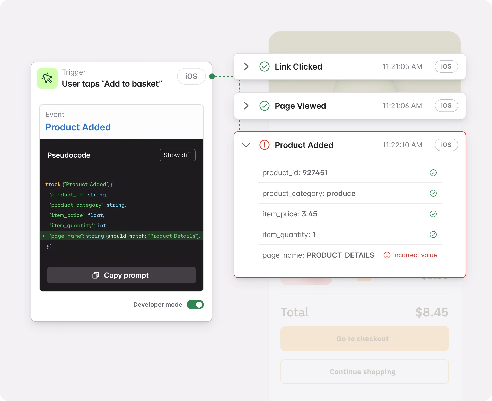 Provide engineers with a clear blueprint for tracking, with real-time validation to surface issues early, before they hit production.